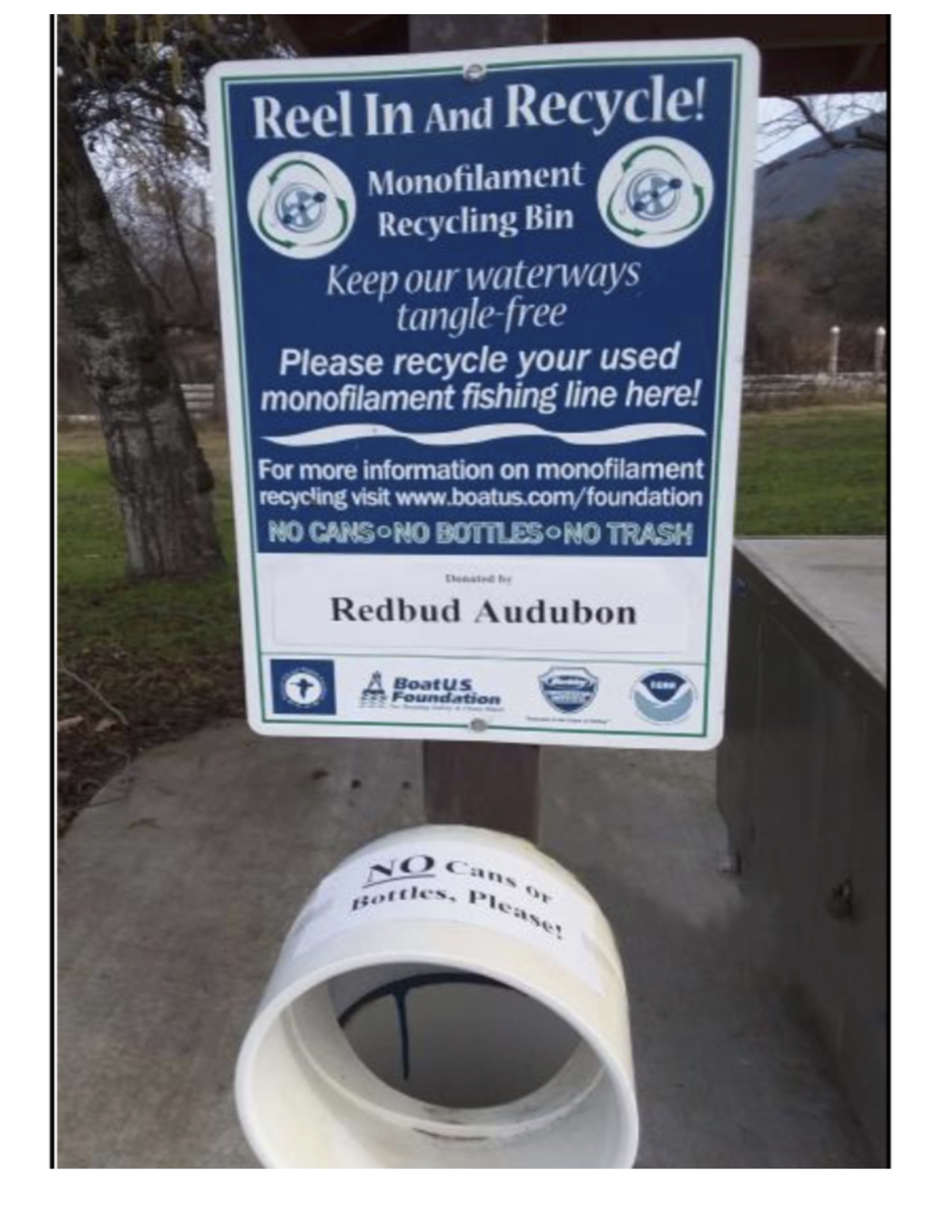 We made a decision to join the project and in May of 2013 began building and installing Fishing Line Recycle Bins around Clear Lake. To date we have installed 25 bins at locations listed on the Location List and collected and properly recycled over 20 pounds of discarded fishing line. The discarded fishing line is sent to Berkeley Fishing Products recycling facility in Iowa and made into other products.